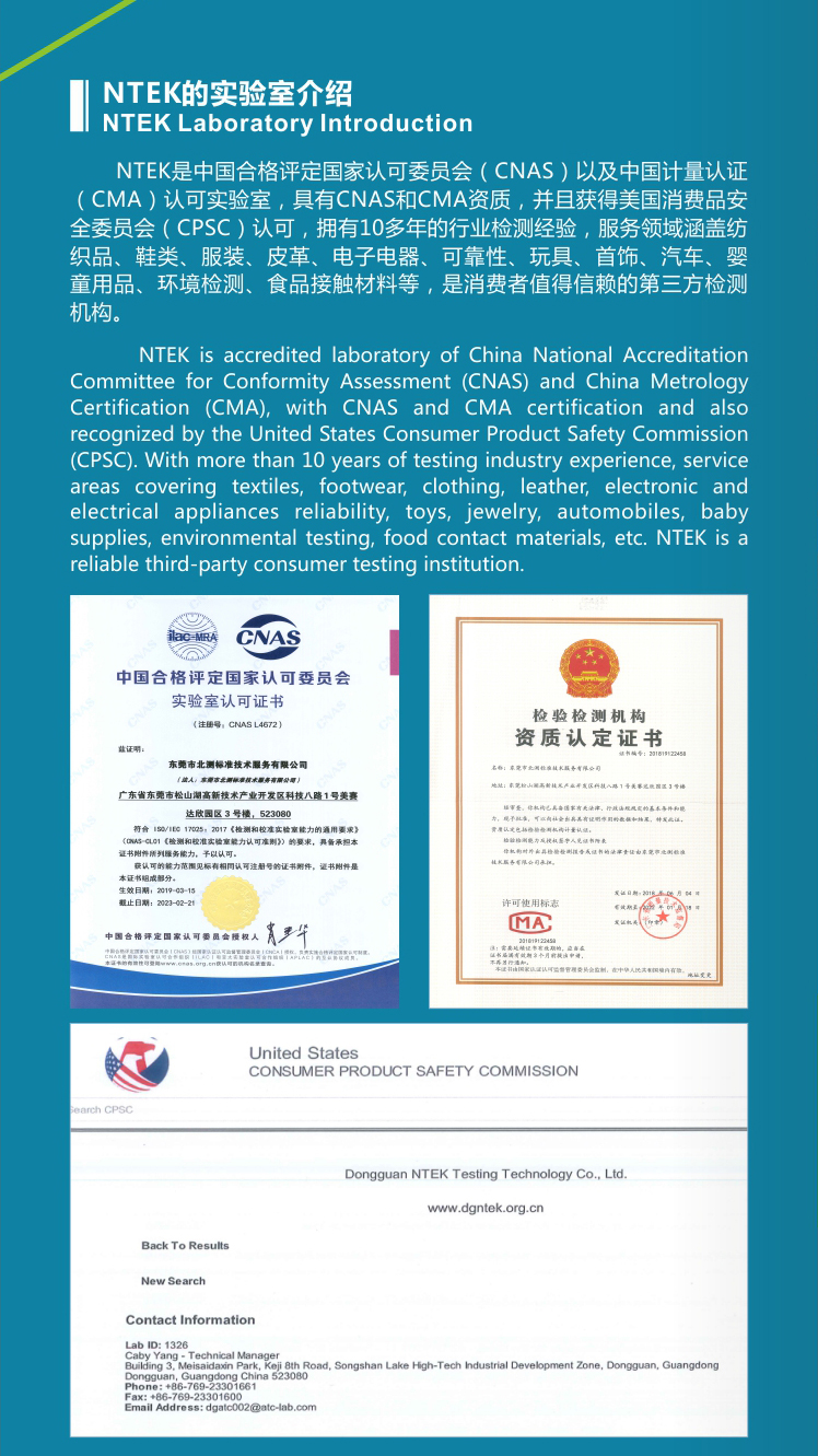 北測標準作為國家CMA和CNAS授權(quán)認可的檢測機構(gòu),一直致力于為客戶提供更好的檢測認證服務(wù)。經(jīng)多年的發(fā)展與壯大,北測標準已建立包括但不限于紡織品、鞋類產(chǎn)品、皮革、電子電器、食品接觸材料、玩具等產(chǎn)品的檢測實驗室,可為您提供全方位的產(chǎn)品檢測服務(wù)及相應(yīng)的解決方案。