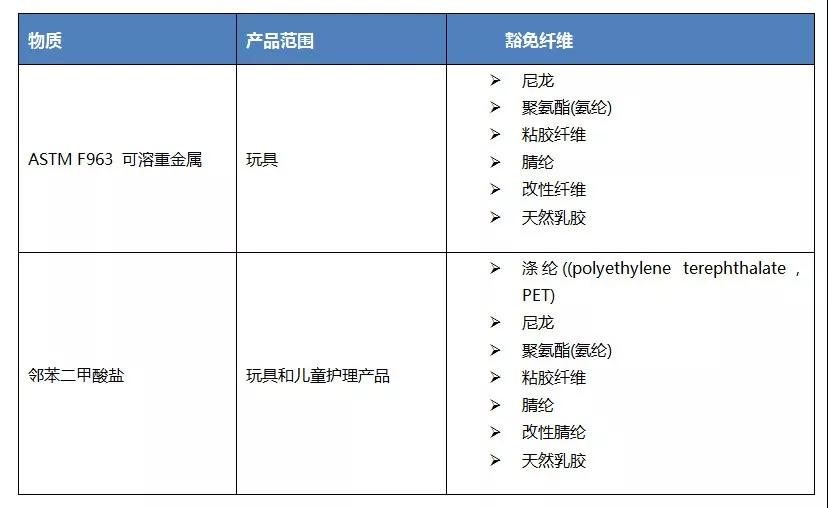 2019年10月9日,美國消費品安全委員會(CPSC)在《聯(lián)邦公報》上發(fā)布了一項擬議規(guī)則通告(84 FR 54055)以確定某些未加工合成纖維中ASTM F963遷移重金屬或特定鄰苯二甲酸鹽的含量不得超出CPSC關于兒童玩具和兒童護理產(chǎn)品立法規(guī)定的限值。基于該提議,特定未加工合成纖維不需要對16 CFR 1250規(guī)定的ASTM F963遷移重金屬和16 CFR 1307規(guī)定的兒童護理產(chǎn)品中的鄰苯二甲酸鹽含量進行第三方符合性測試。